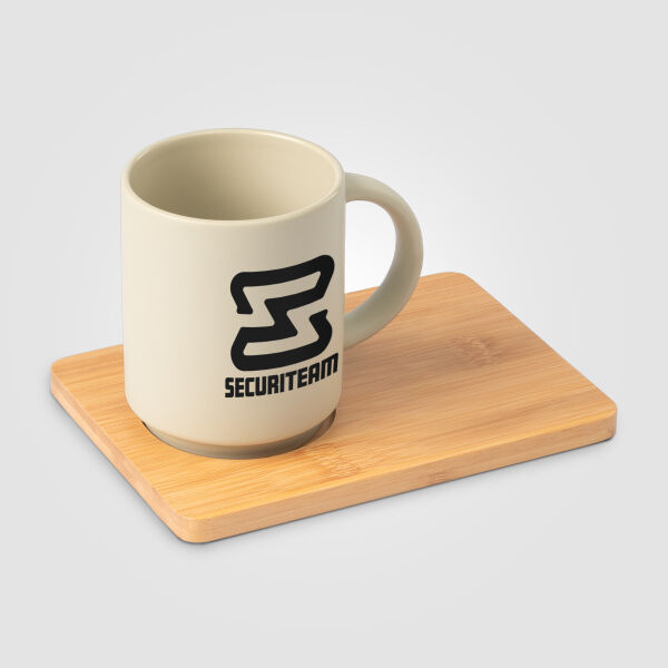 Heeft u in uw restaurant nieuwe mooie mokken nodig? Ontdek deze prachtige Café Duo keramische mokken met bamboe plateau. Matte buitenkant en gladde binnenkant. Een charmerende set voor bij u op tafel. Verkrijgbaar in beige en zwart. Te graveren op bamboe plateau of bedruk de mok zelf. 325 ml. Magnetronbestendig. Met de hand afwassen.