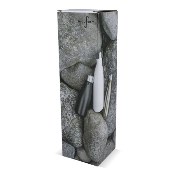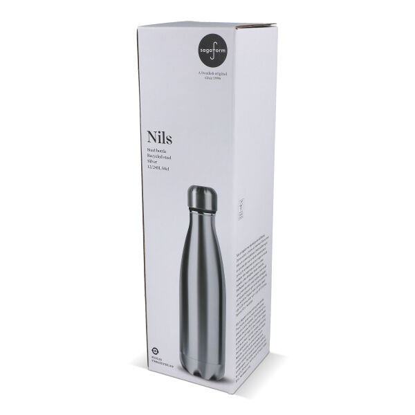 De Sagaform Nils stalen fles in chroom is lekvrij, foodsafe en geschikt voor hete dranken. Koolzuurhoudende dranken, gebruik in de magnetron of vaatwasser worden niet aanbevolen. Handwas wordt geadviseerd om de glanzende afwerking mooi te houden. De fles wordt geleverd in een FSC-gecertificeerde geschenkdoos, wat hem extra geschikt maakt voor promotionele doeleinden.